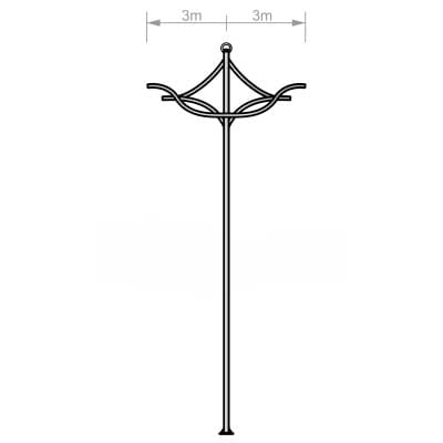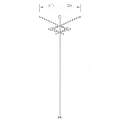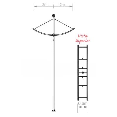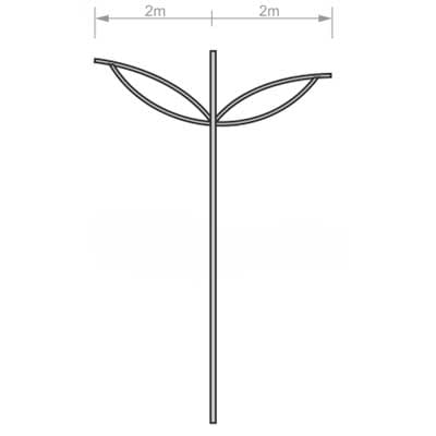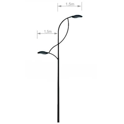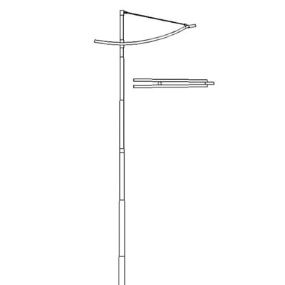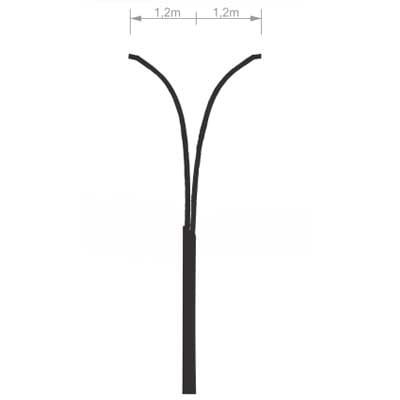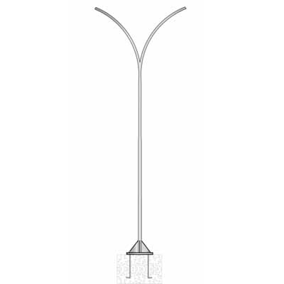 Poste Curvo Duplo Telecônico Engastado em aço pintado e ou galvanizado à fogo.